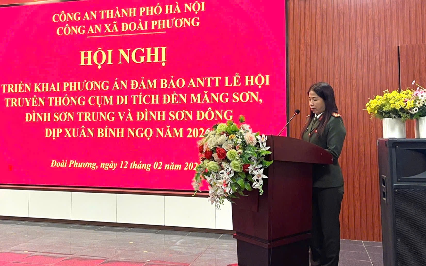 Theo đó, trong hai ngày 23 và 24/02/2026 (tức mùng 7 và mùng 8 tháng Giêng Âm lịch), Công an xã huy động 54 lượt cán bộ, chiến sĩ và 72 lượt lực lượng an ninh cơ sở tham gia bảo vệ. Các lực lượng có mặt trước giờ làm nhiệm vụ 30 phút, chuẩn bị đầy đủ công cụ hỗ trợ, đảm bảo sẵn sàng xử lý mọi tình huống phát sinh.